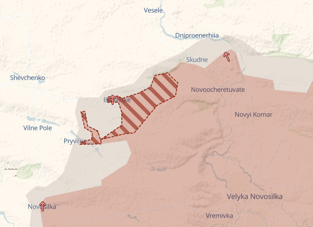 Также российские войска продолжают ежедневно продвигаться к северо-западу от Великой Новоселки. Они ведут бои в Бурлацком и в Привольном.