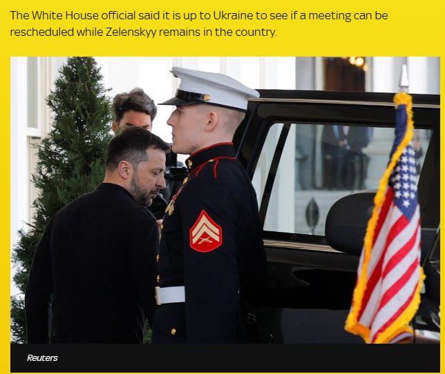 Sky News приводит заявление представителя Белого дома журналистам о том, что Украина должна решить, можно ли перенести встречу президентов, пока Зеленский остается в стране.