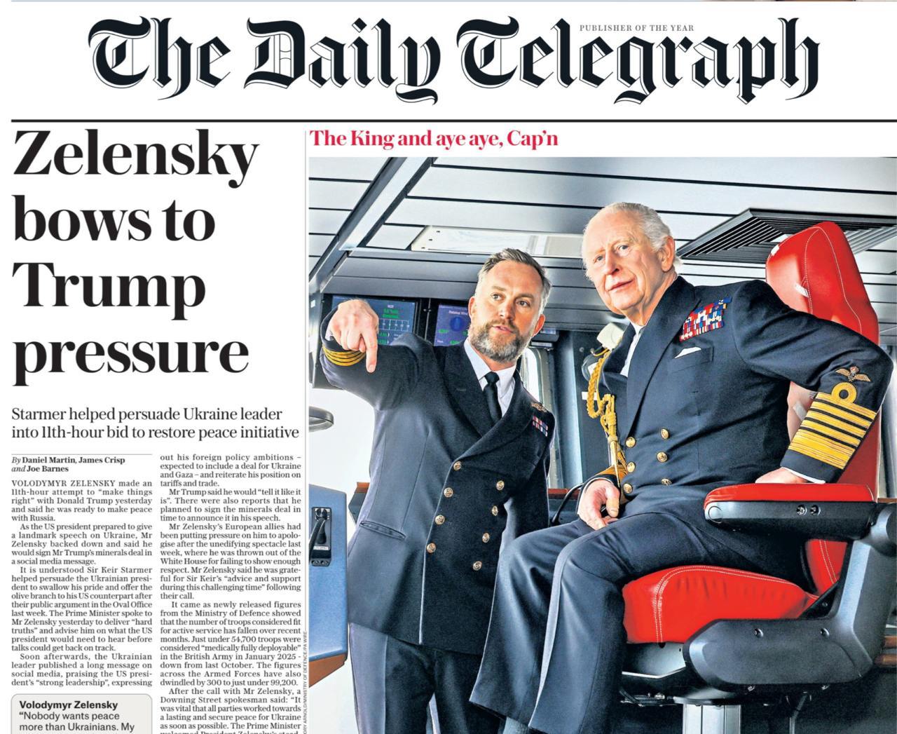 The Daily Telegraph также сообщает, что "Зеленский уступает давлению Трампа".