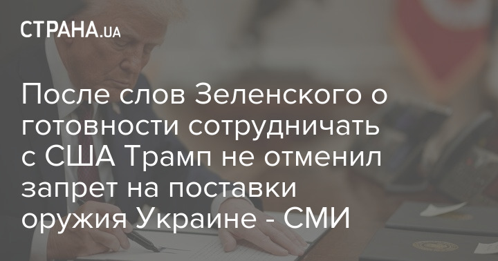 После слов Зеленского о готовности сотрудничать с США Трамп не отменил запрет на поставки оружия Украине - СМИ