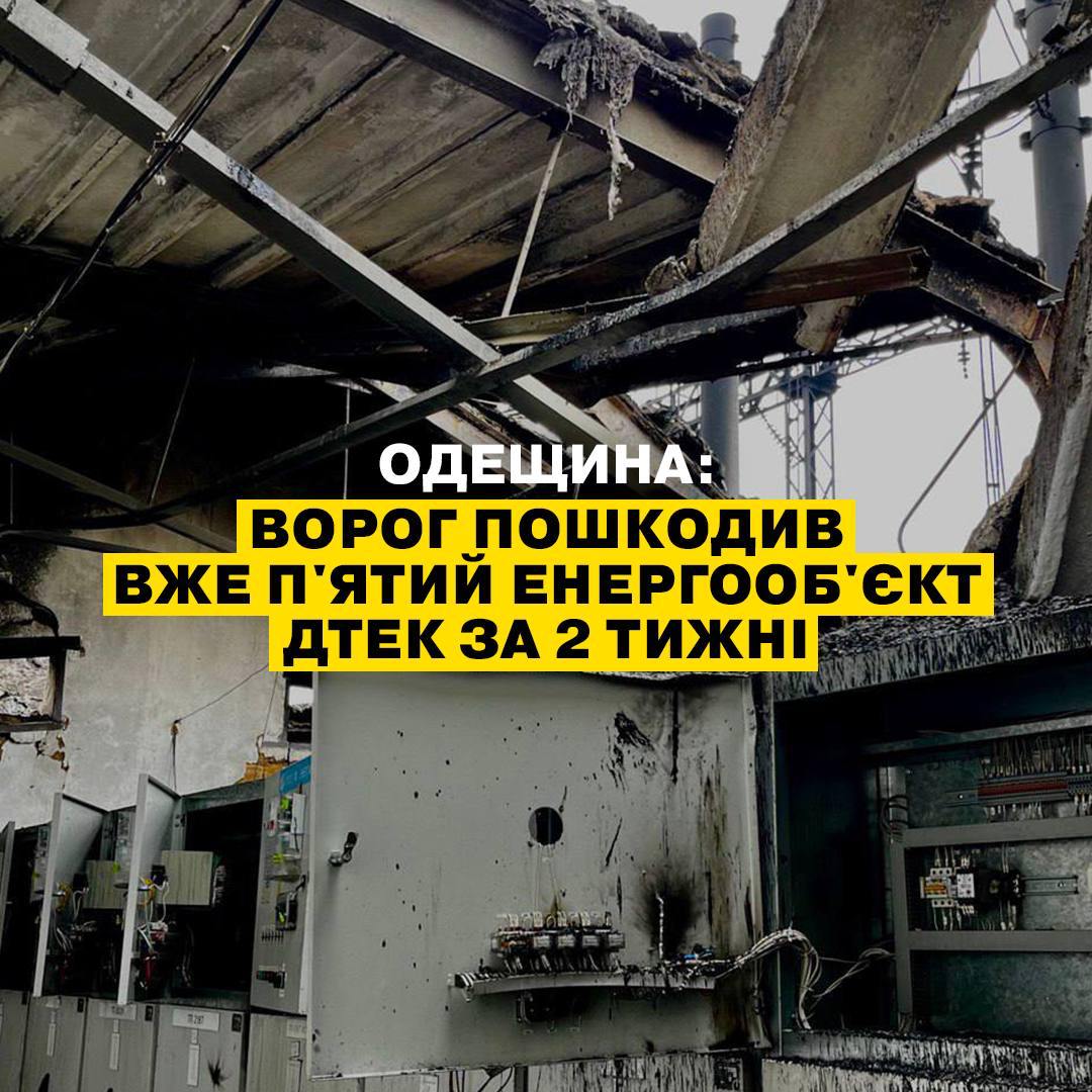 10:16 Фото поврежденного энергообъекта ДТЭК в Одесской области.