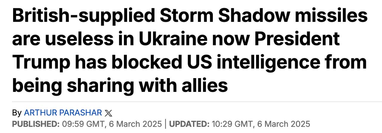 14:40 США запретили Британии делиться своими разведданными с Украиной, а потому британские ракеты Storm Shadow, вероятно, стали "бесполезными" в Украине.