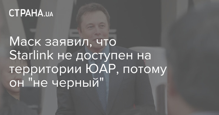 Американский миллиардер Илон Маск заявил, что интернет Starlink не доступен на территории Южно-Африканской Республики (ЮАР), потому он не темнокожий.