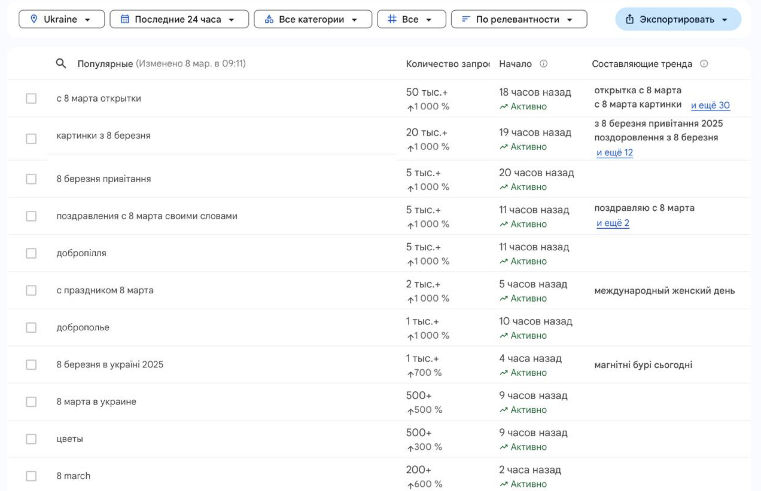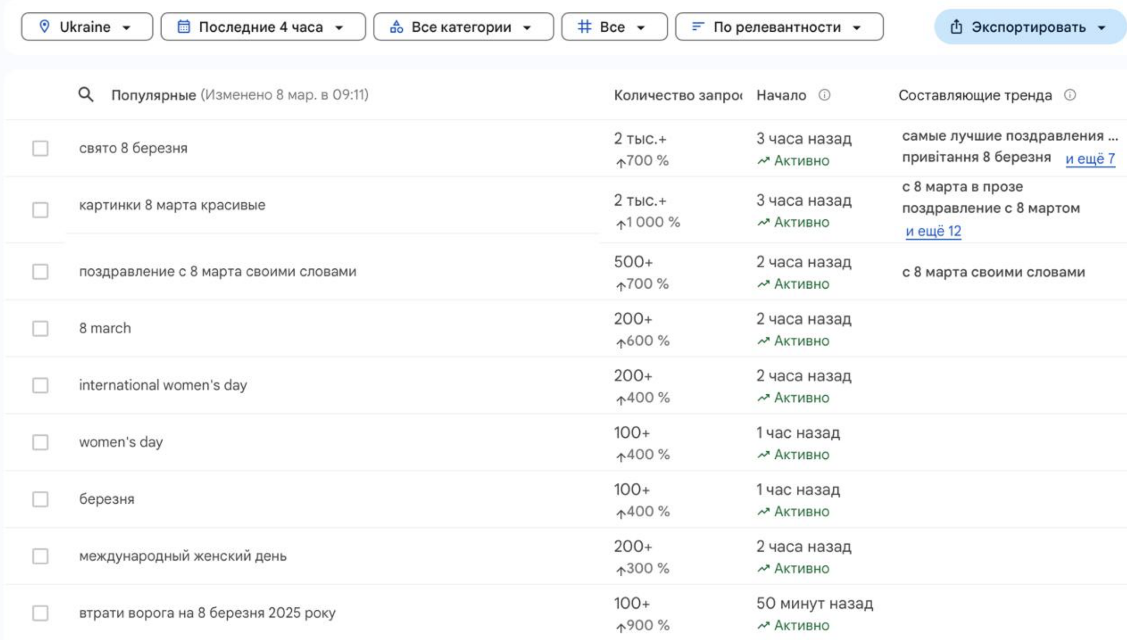 "Вот что делает остановка USAID". Украинцы массово ищут в Google поздравления с 8 марта