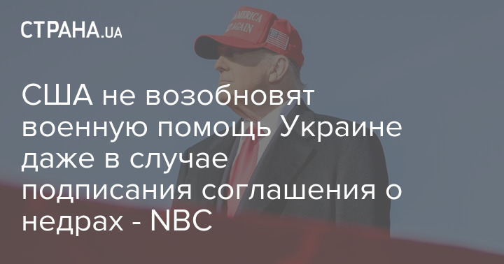 Соединенные Штаты не возобновят военную помощь Украине даже в случае подписания соглашения о недрах. Об этом сообщает NBC News.