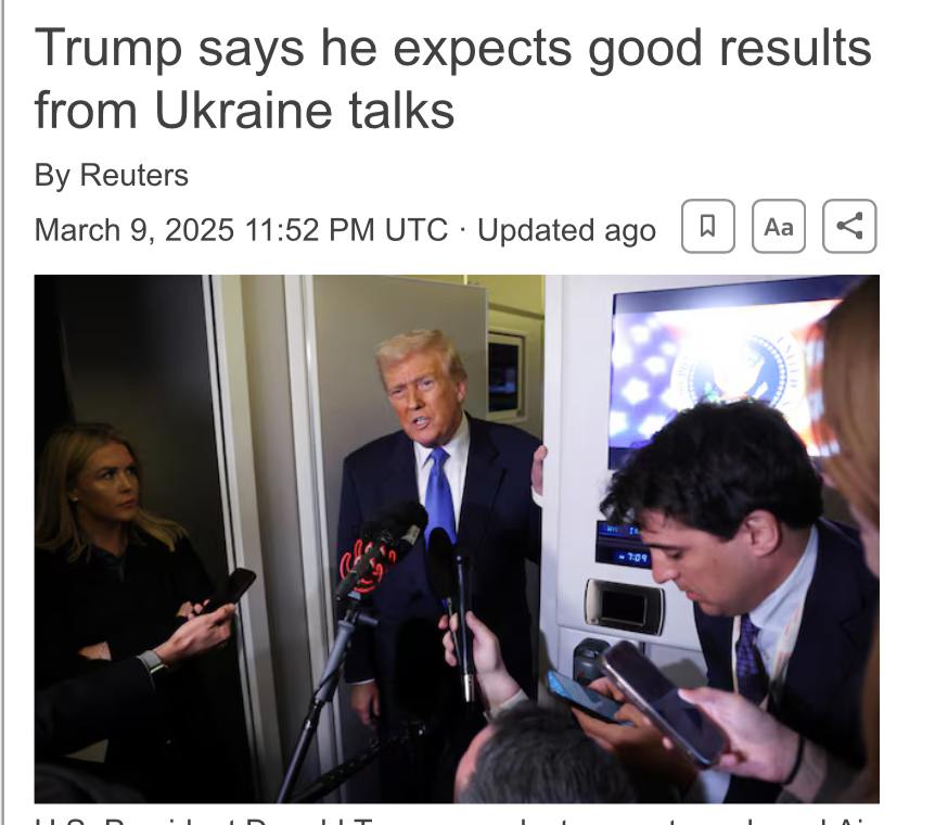 Трамп также сообщил, что ожидает хороших результатов от переговоров США с Украиной в Саудовской Аравии.