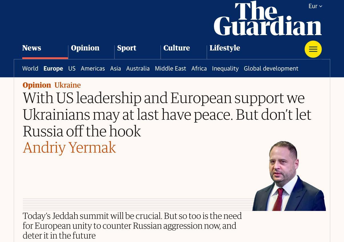 Об этом Ермак написал в колонке для британской газеты The Guardian.