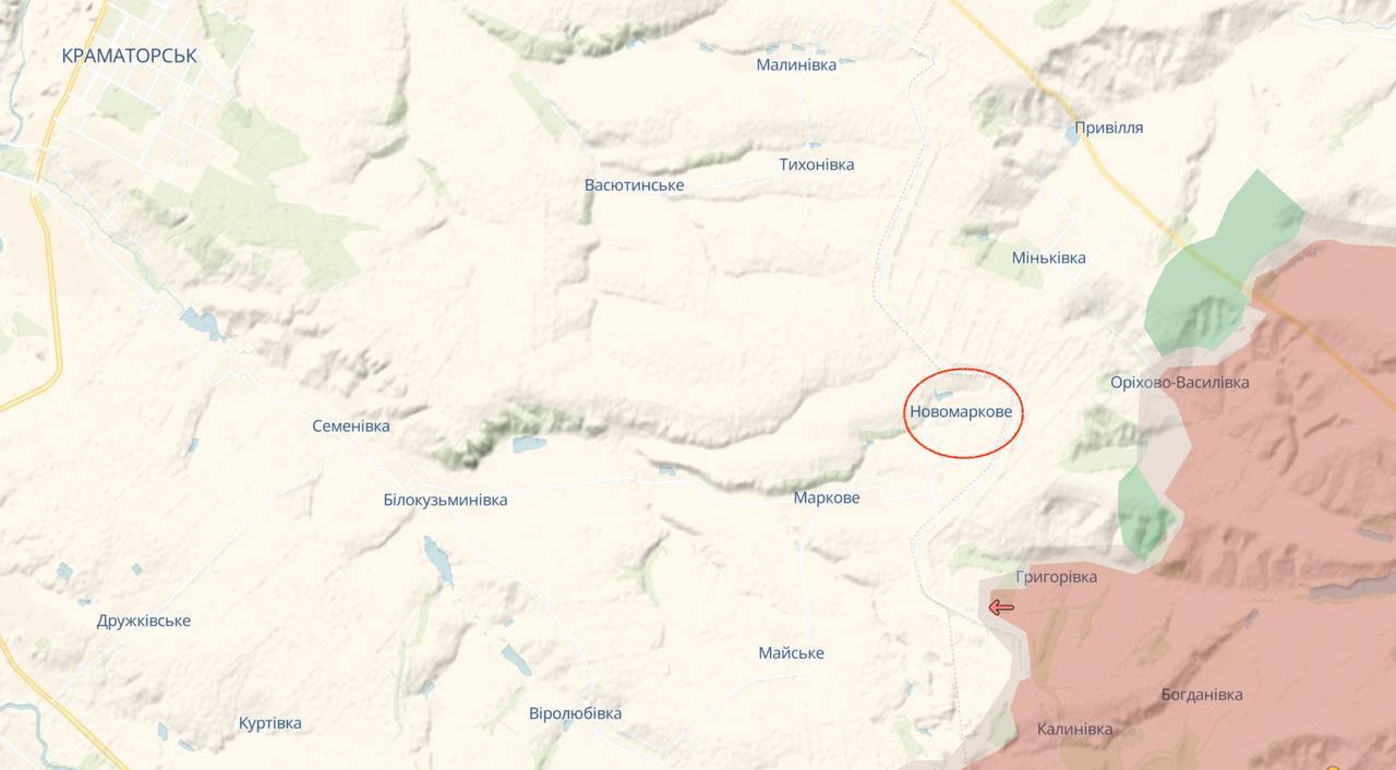 Судя по данным карты Deep State, от российских позиций до Новомарково еще более двух километров.