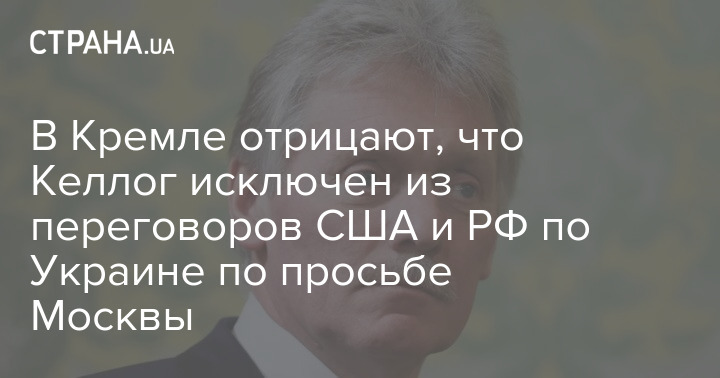 Спикер Кремля Дмитрий Песков отрицает, что спецпредставитель президента США Дональда Трампа Кит Келлог исключен из переговоров США и РФ по Украине по просьбе Москвы.