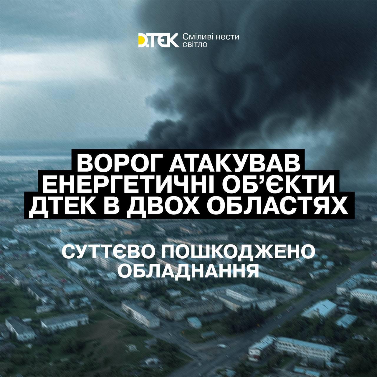 Как сообщает ДТЭК, без света осталась часть жителей обоих регионов.