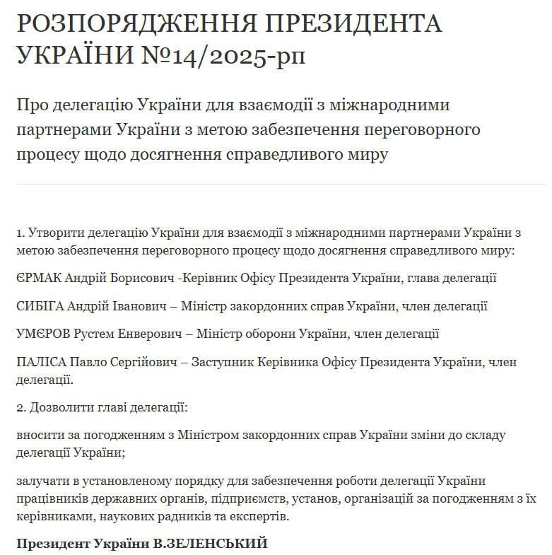 15:37 Президент Владимир Зеленский утвердил состав переговорной группы Украины для мирных переговоров: