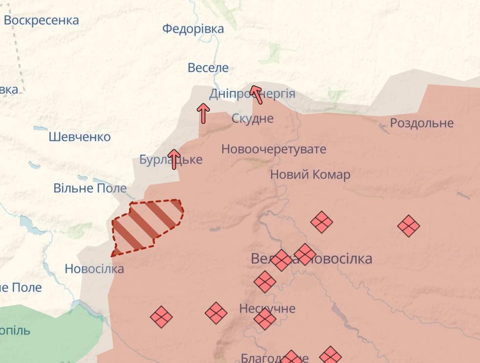 17.15 Россияне продвинулись в районе Новоселки, свидетельствует карта Deep State.