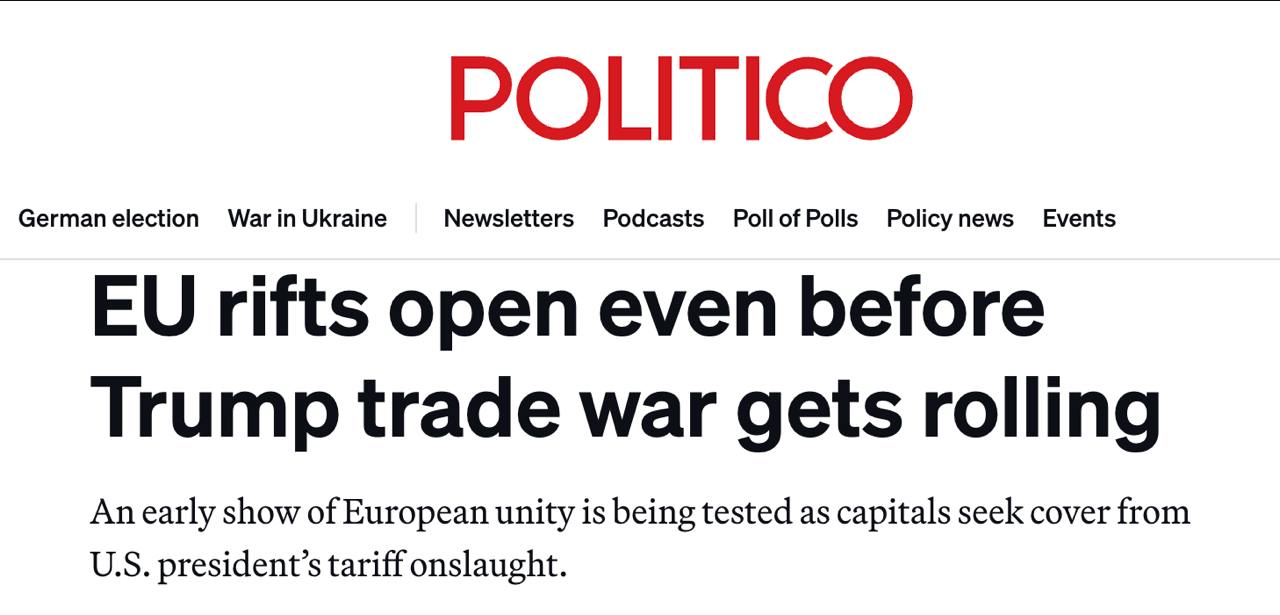 "Раскол в ЕС начался еще до начала торговой войны Трампа", - заявляет в заголовке Politico.