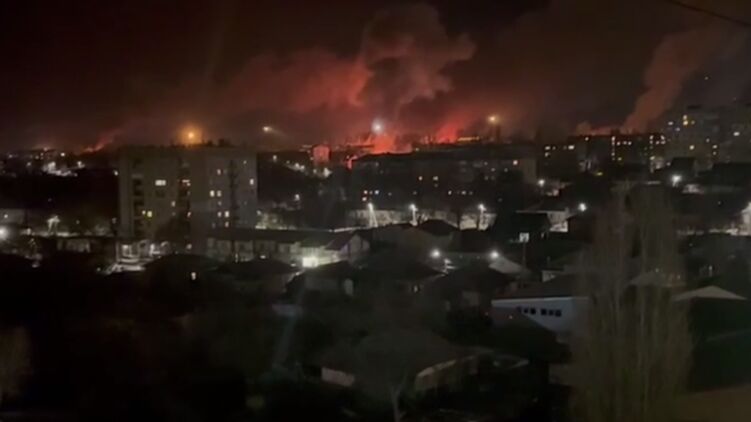 Сообщается, что в районе аэродрома зафиксирован пожар, взрывы и вторичная детонация боеприпасов.