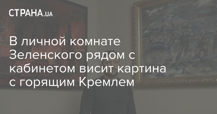В офисе Владимира Зеленского висит картина с горящими башнями Кремля и мавзолеем В. Ленина.