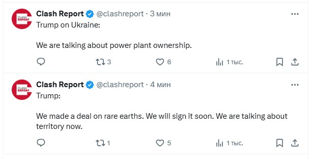 "Мы заключили сделку о редкоземельных металлах. Скоро подпишем. Сейчас мы говорим о территории", – сказал глава Белого дома.