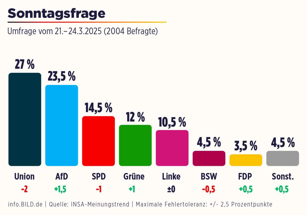 "Это самый высокий показатель для AдГ в опросах INSA. Анализ показывает, что максимальный потенциал АдГ составляет 30,5%", - заявил глава INSA Герман Бинкерт.
