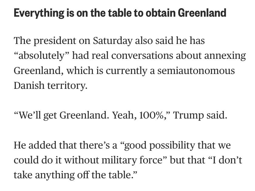 Трамп уверен, что США получат Гренландию, и не исключил, что военной силой
