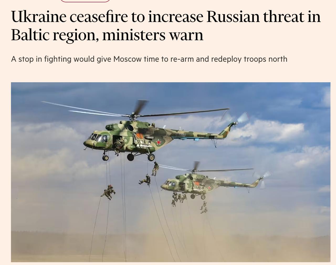 Министры заявляют, что остановка войны в Украине "резко усилит угрозу безопасности стран Балтии, поскольку Россия продолжит реализацию планов по перевооружению и передислокации войск на северо-восточный фланг НАТО".