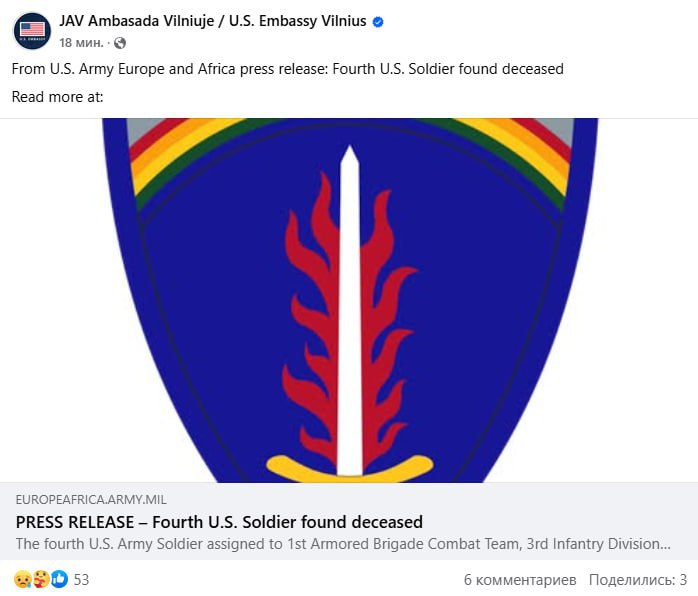 Позже командование армии США в Европе и Африке сообщило, что трое американских военных, пропавших на учениях в Литве, найдены мертвыми.