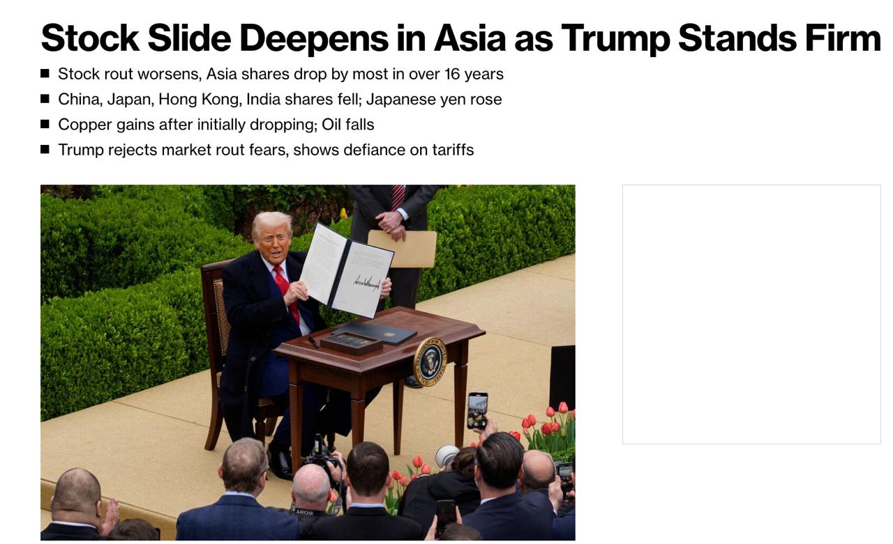 Как пишет Bloomberg, после тарифов президента США Дональда Трампа и ответных действий Китая индекс MSCI Asia Pacific упал на 7,1%, что стало худшим показателем с мирового кризиса 2008 года.