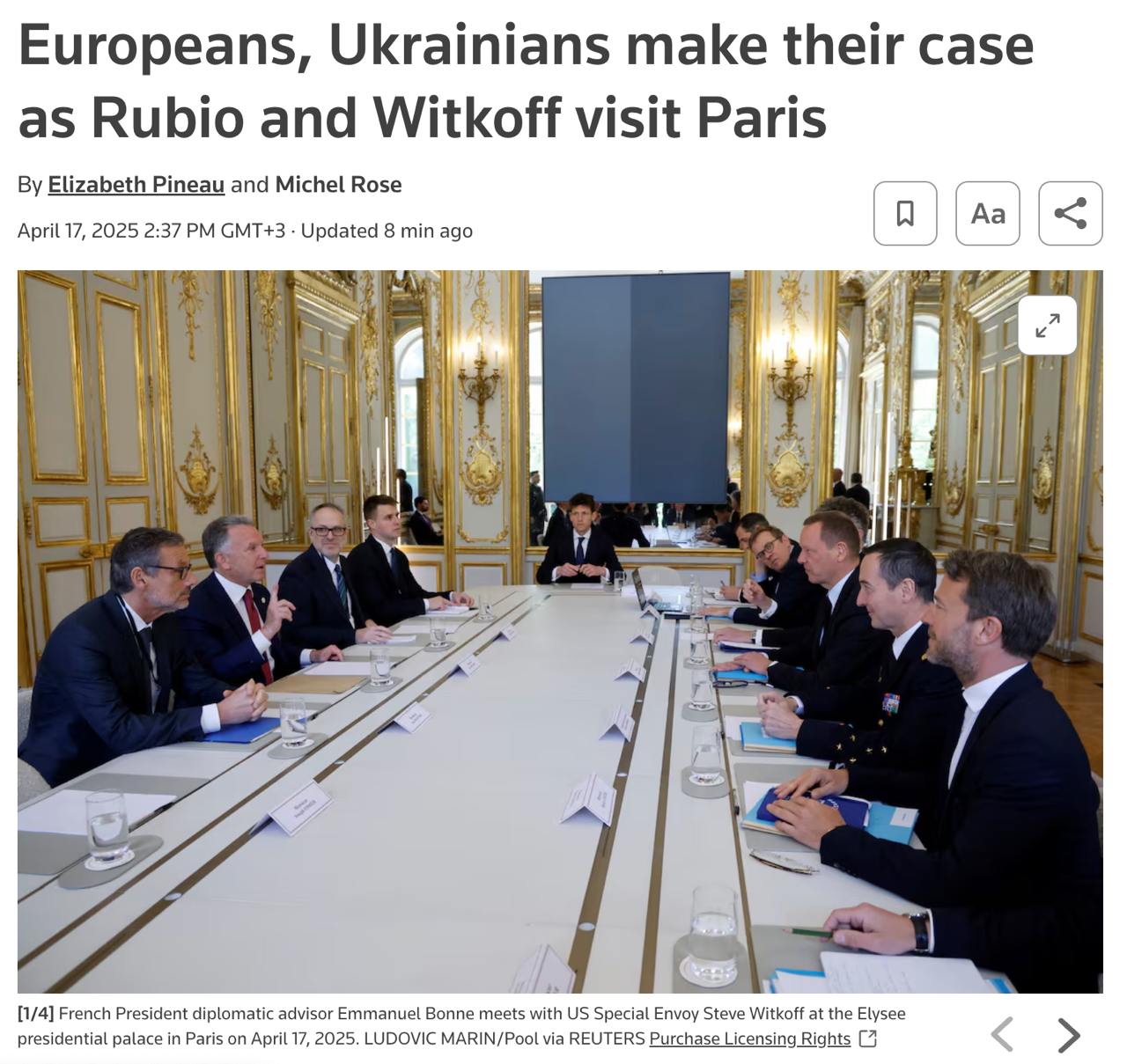 Напомним, что в Париж летят госсекретарь США Марко Рубио и спецпредставитель президента США Стивен Уиткофф для встречи с руководителями Франции.