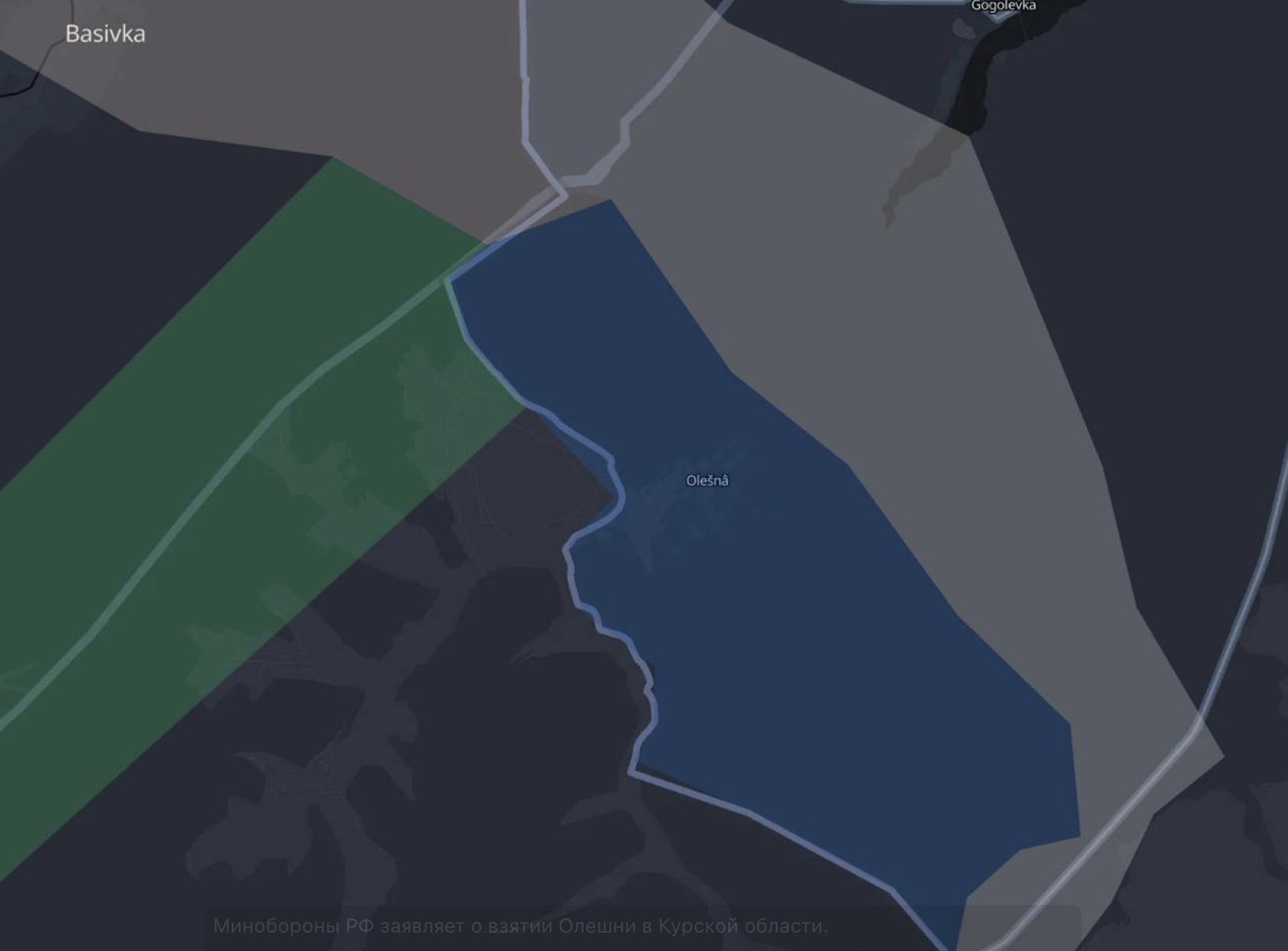 Минобороны РФ заявляет о взятии Олешни в Курской области.
