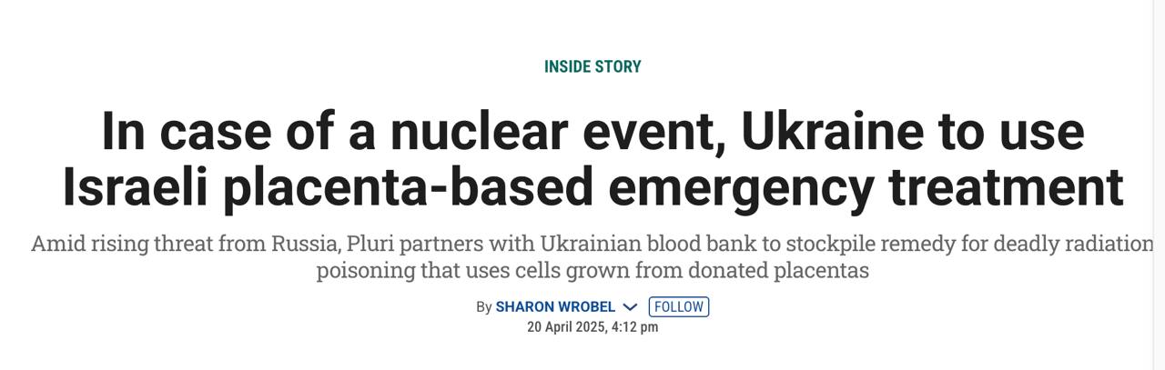 Менее чем через две недели после удара беспилотника по арке укрытия на Чернобыльской АЭС Украина заключила соглашение с израильской компанией Pluri о поставках препарата PLX-R18 для клеточной терапии. Препарат делают на основе плаценты, он предназначен для лечения лучевой болезни.