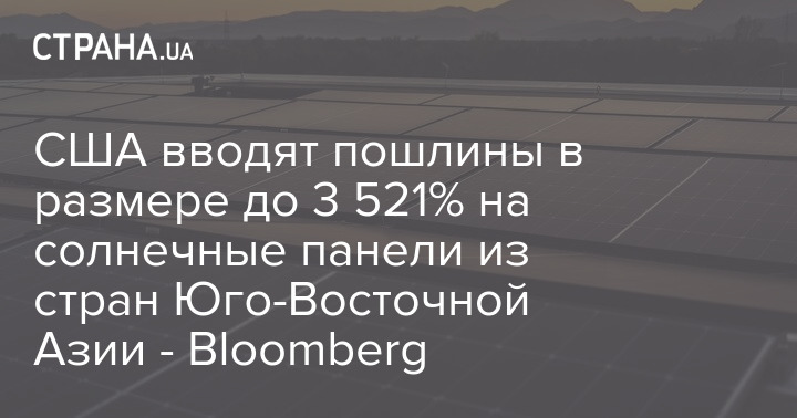 Министерство торговли США окончательно определило уровень пошлин на продукцию солнечной энергетики из четырех стран Юго-Восточной Азии.: Камбоджи, Вьетнама, Малайзии и Таиланда. Для Камбоджи будет установлена пошлина в размере 3521%, для производителей из Малайзии — 34,4%, из Вьетнама — 395,9%, из Таиланда — 375,2%.
