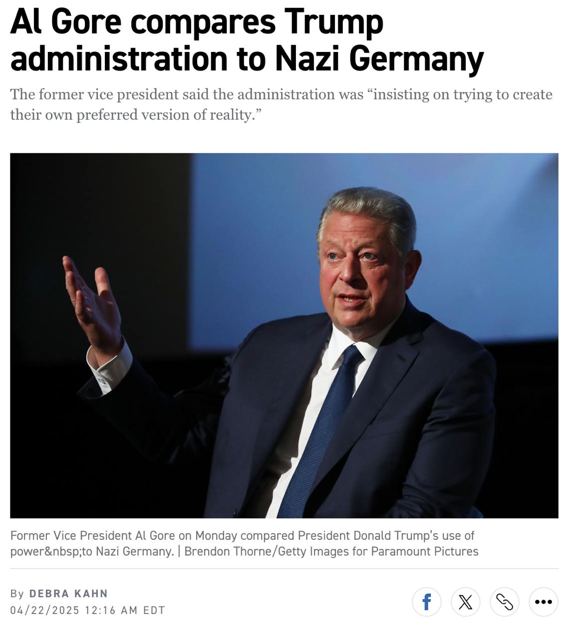Бывший вице-президент США Альберт Гор, занимавший этот пост в администрации Билла Клинтона, сравнил администрацию Дональда Трампа с нацистским режимом в Германии.