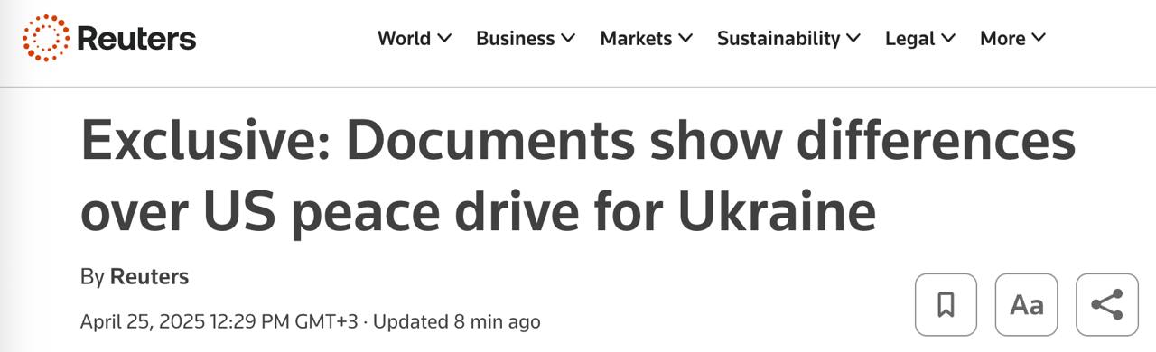 В украинско-европейском документе предлагается, что не будет никаких ограничений на украинские силы и никаких ограничений на размещение союзниками Украины своих военных сил на украинской территории. Reuters полагает, что РФ будет против этого.
