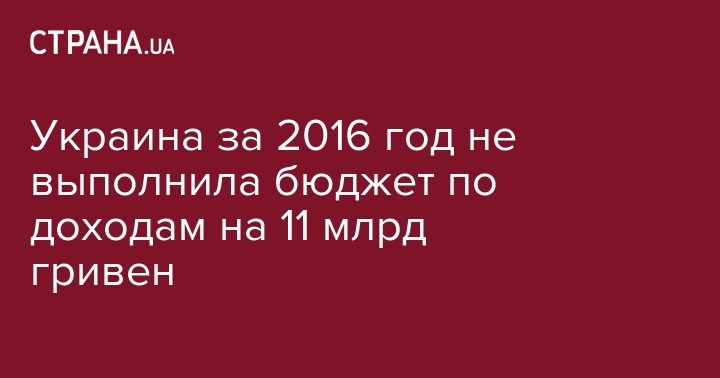 Украина не выполнила бюджет-2016 года по доходам на 1,7% или 10, 934 млрд.грн. Об этом свидетельствуют данные Государственной казначейской службы.