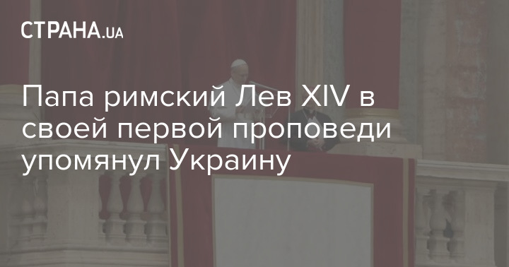 Папа римский Лев XIV во время своей первой проповеди призвал к достижению "продолжительного и подлинного мира" в Украине, а также немедленному прекращению огня в секторе Газа и оказанию помощи его населению.