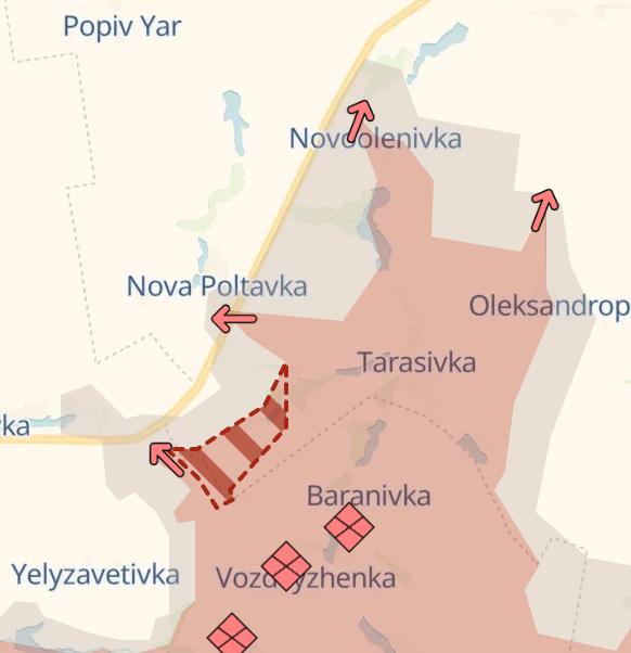 По данным паблика, продвижения есть на Новопавловском направлении южнее Серебряного, а также к югу от Константиновки - в районе Водяного Второго. В итоге уже в нескольких местах идут бои на трассе Покровск - Константиновка.