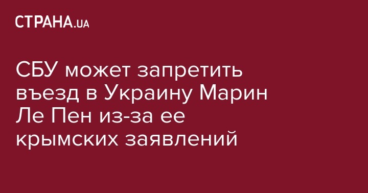 Сотрудники СБУ обсуждают вопрос наложения запрета на въезд в Украину в отношении лидера французского "Национального фронта" и одной из фаворитов грядущих весной президентских выборов Марин Ле Пен. Поводом для такого запрета является ее публичное заявление о признании российского статуса Крыма.
