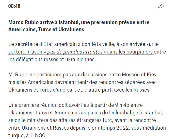 Также госсекретарь США Марко Рубио прибыл в Стамбул, сообщает Le Monde.