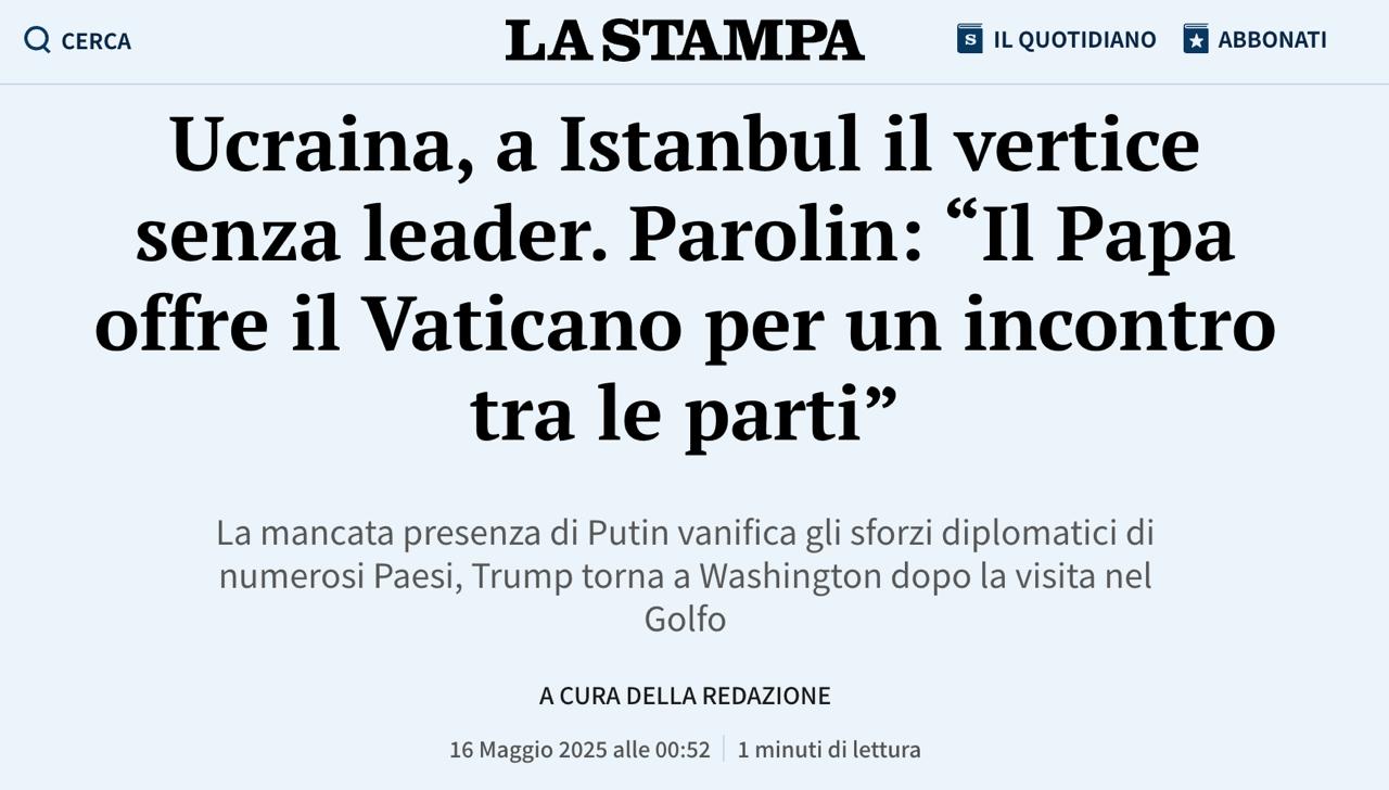 После того как Владимир Путин не явился на мирные переговоры в Турции, которые он сам и предложил, Ватикан назвал их результат "трагическим".