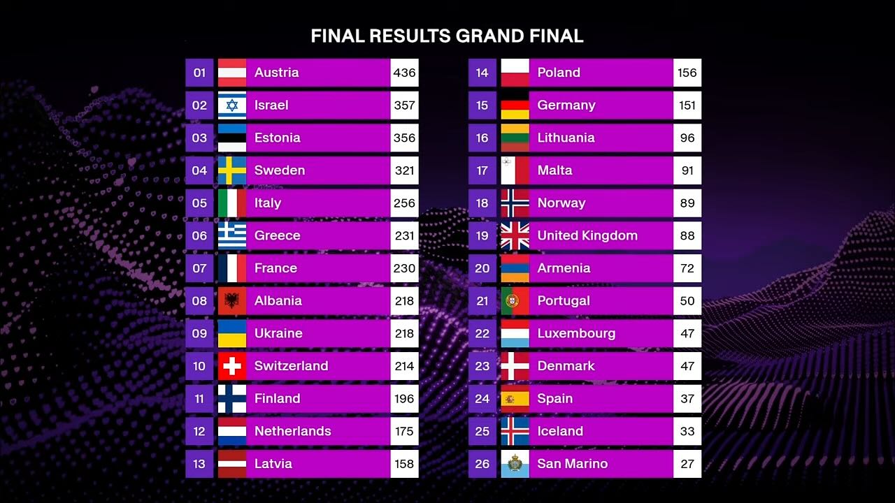 Австрия победила на "Евровидении-2025". Украина заняла девятое место