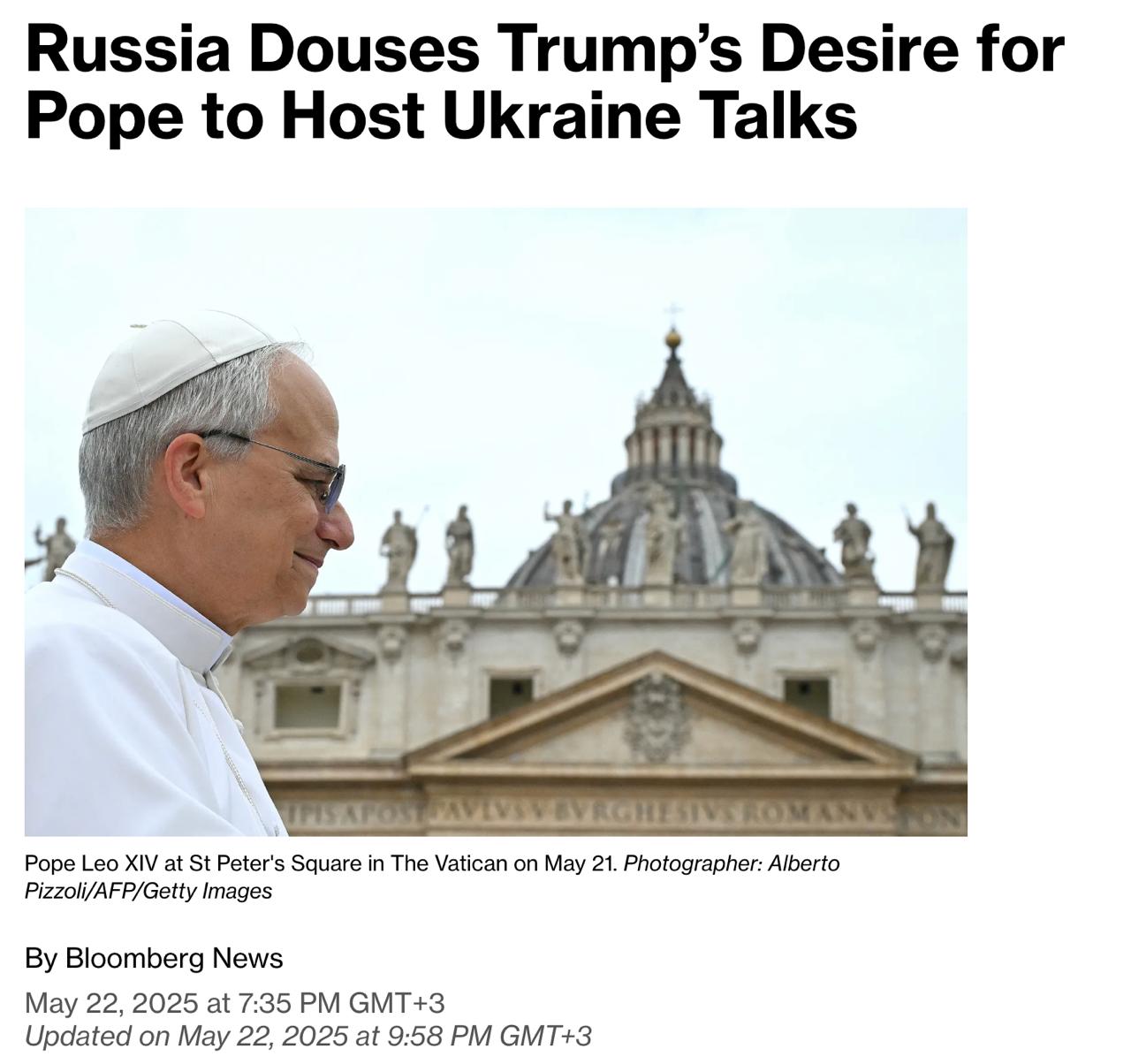 Ранее The Wall Street Journal сообщал, что новый раунд переговоров Украины и России пройдет в середине июня на территории Ватикана.