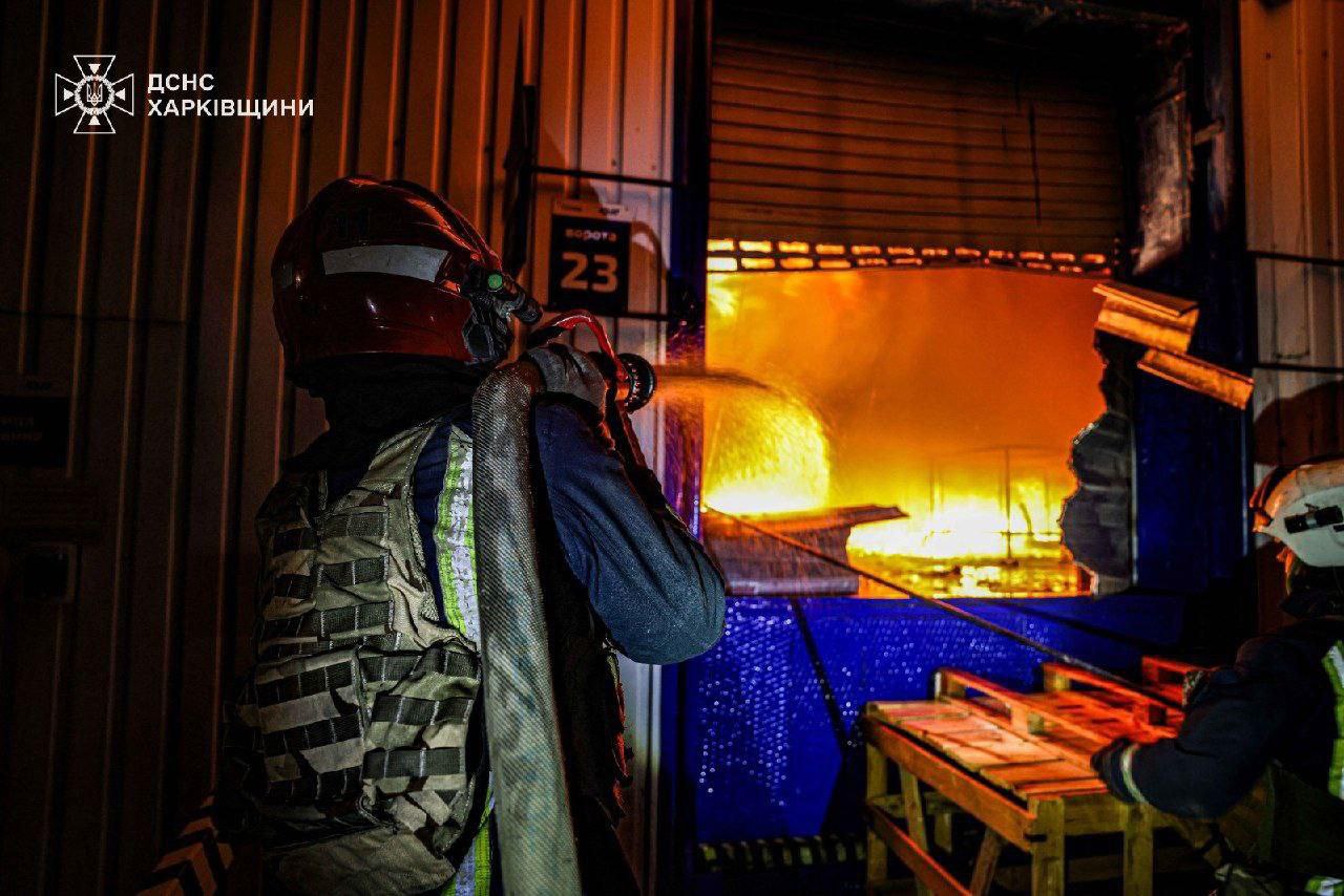 12.33 В Харьковской области после прилёта загорелась предприятие. Огонь охватил 7500 квадратных метров, сообщает ГосЧС.
