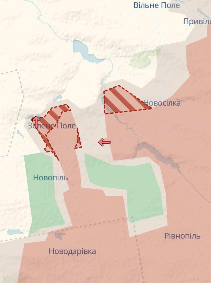 В Донецкой области DeepState подтверждает захват Зеленого Поля на юге Донецкой области, о чем накануне заявляла РФ, и продвижение около соседнего села Новоселка.