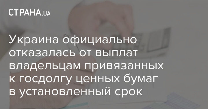Украина официально отказалась от выплат владельцам привязанных к госдолгу ценных бумаг в установленный срок