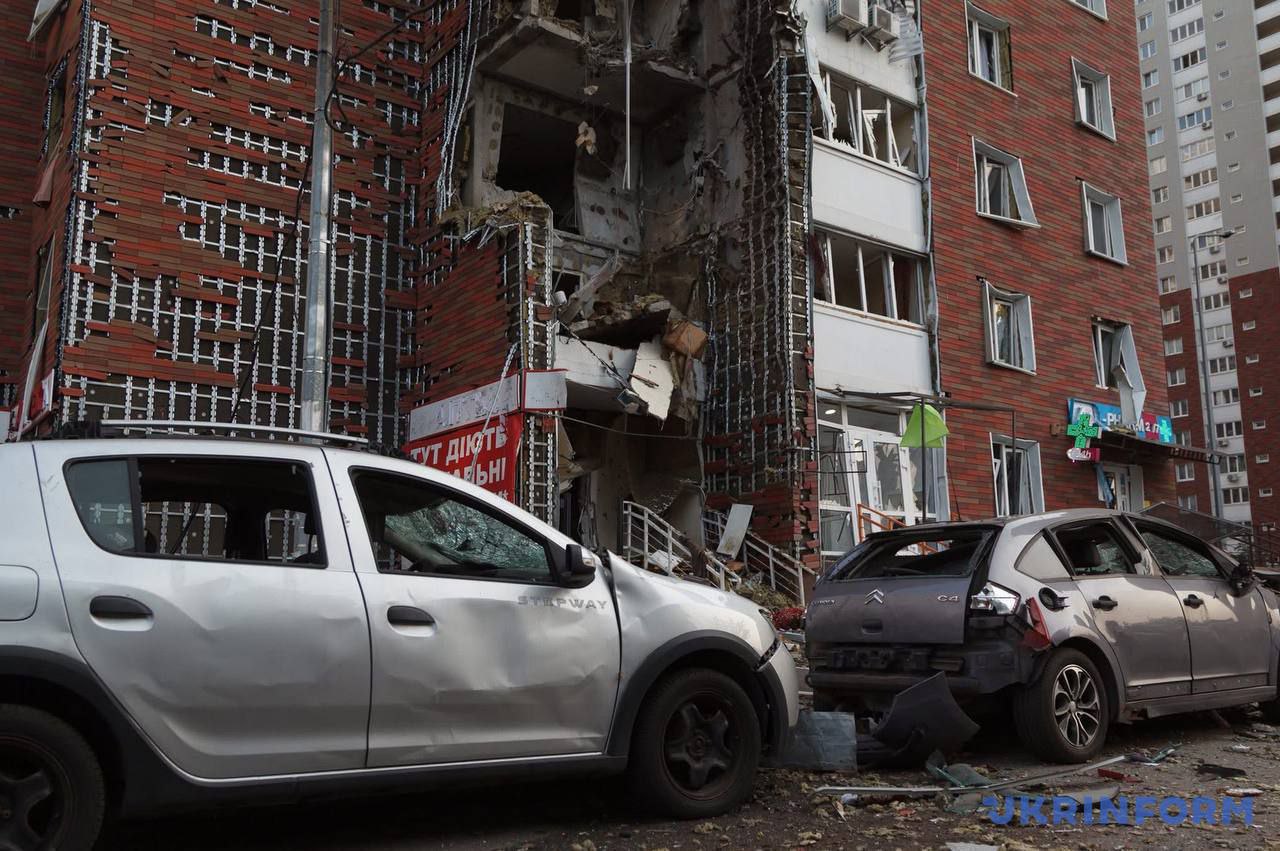 Момент прилета по многоэтажке в Киеве попал на видео.