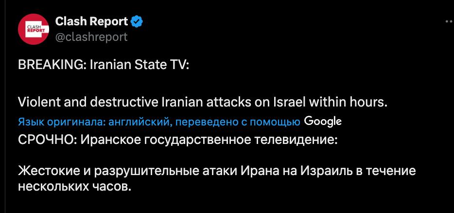 21:28 Иран проведет "жестокие и разрушительные атаки" на Израиль в течение нескольких часов.