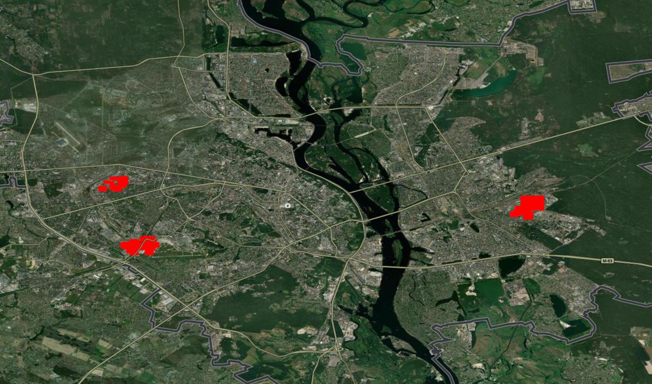 А именно - по промышленной территории в Днепровском районе. В Дарницком районе - пожары в нескольких локациях (в частности, повреждены детсад и ряд нежилых зданий).