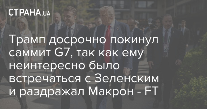 Названы причины досрочного отъезда президента США Дональда Трампа с саммита "Большой семерки" в Канаде. Это произошло из-за отсутствия  у него интереса к встрече с Владимиром Зеленским и раздражения Эмманюэлем Макроном.