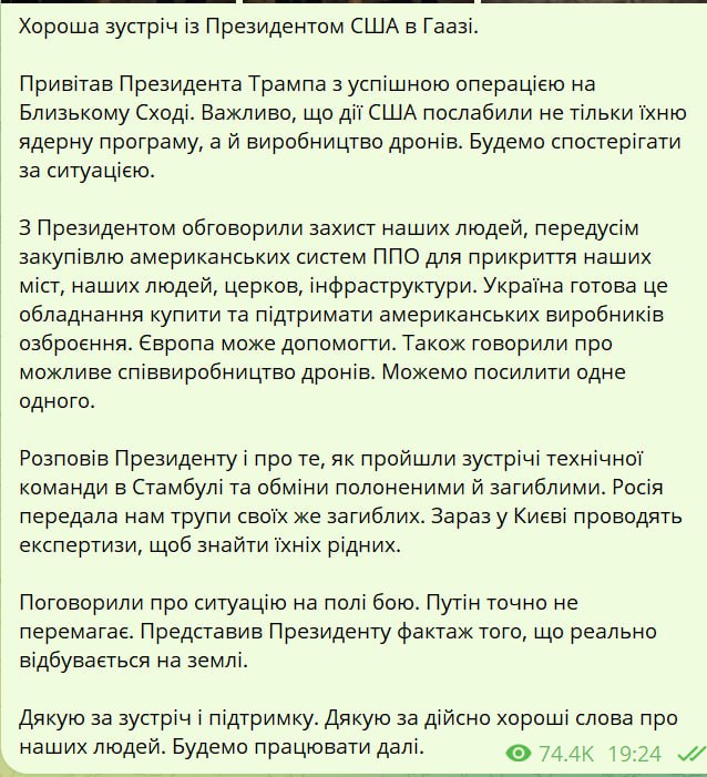19.36 Зеленский заявил, что его встреча с Трампом была "хорошей".