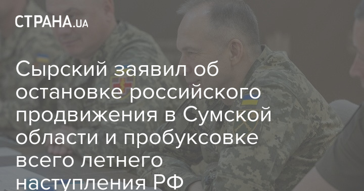 Главнокомандующий Вооруженных сил Украины Александр Сырский заявил об остановке российского продвижения в Сумской области и пробуксовке всего летнего наступления РФ.