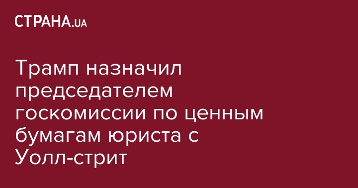 Избранный президент США Дональд Трамп в среду, 4 января, заявил о назначении председателя государственной Комиссии по ценным бумагам и биржам - опытного юриста одного из финансовых учреждений Нью-Йорка Джея Клэйтона.