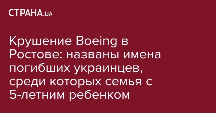 Крушение Boeing в Ростове: названы имена погибших украинцев, среди которых семья с 5-летним ребенком